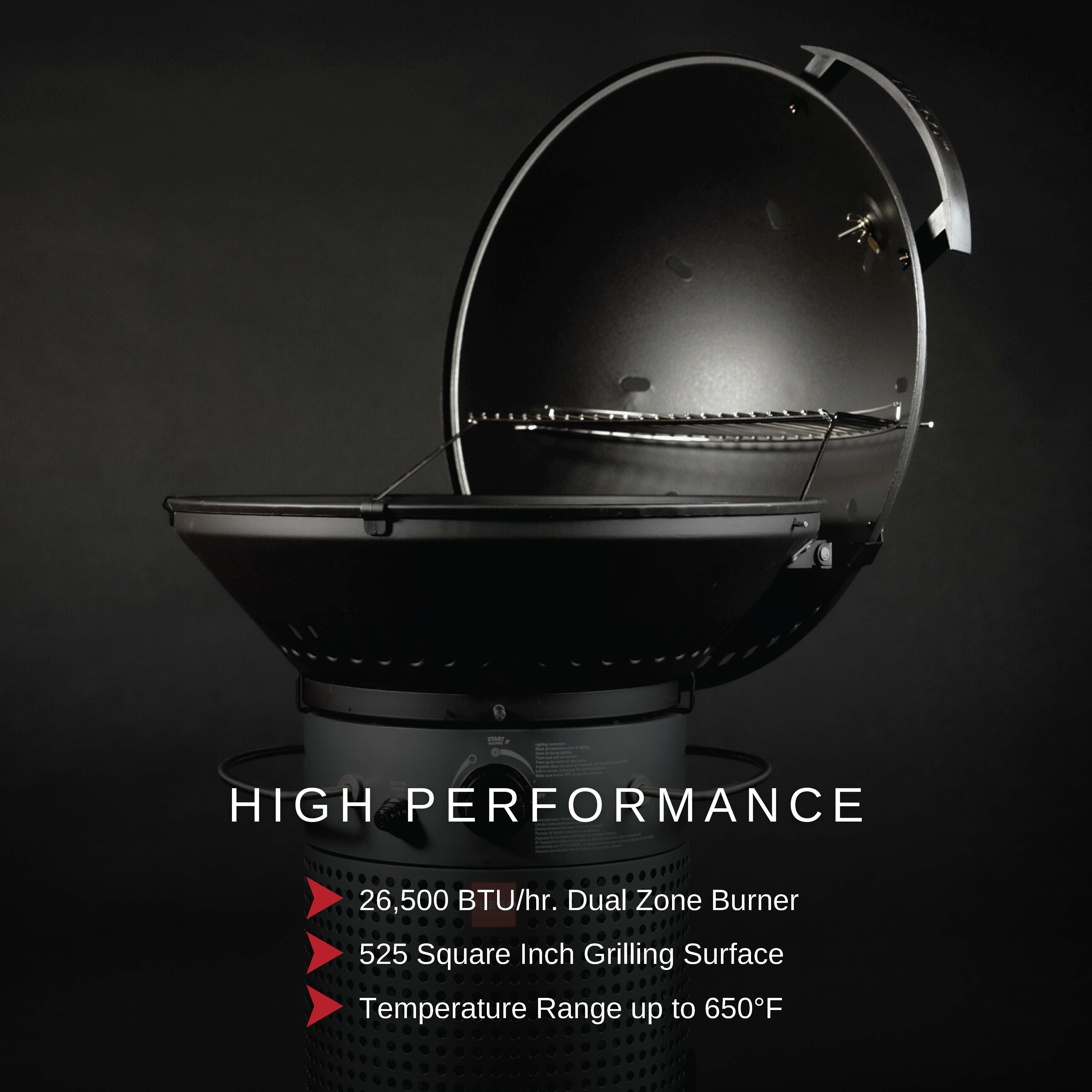 - 26,500 BTU/hr. Combined Dual Zone Burners | for Direct & Indirect Grilling