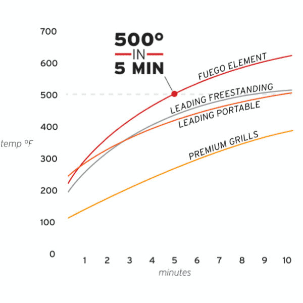 - 500°F In Just 5 Minutes & 300°F-650°F Overall Temps