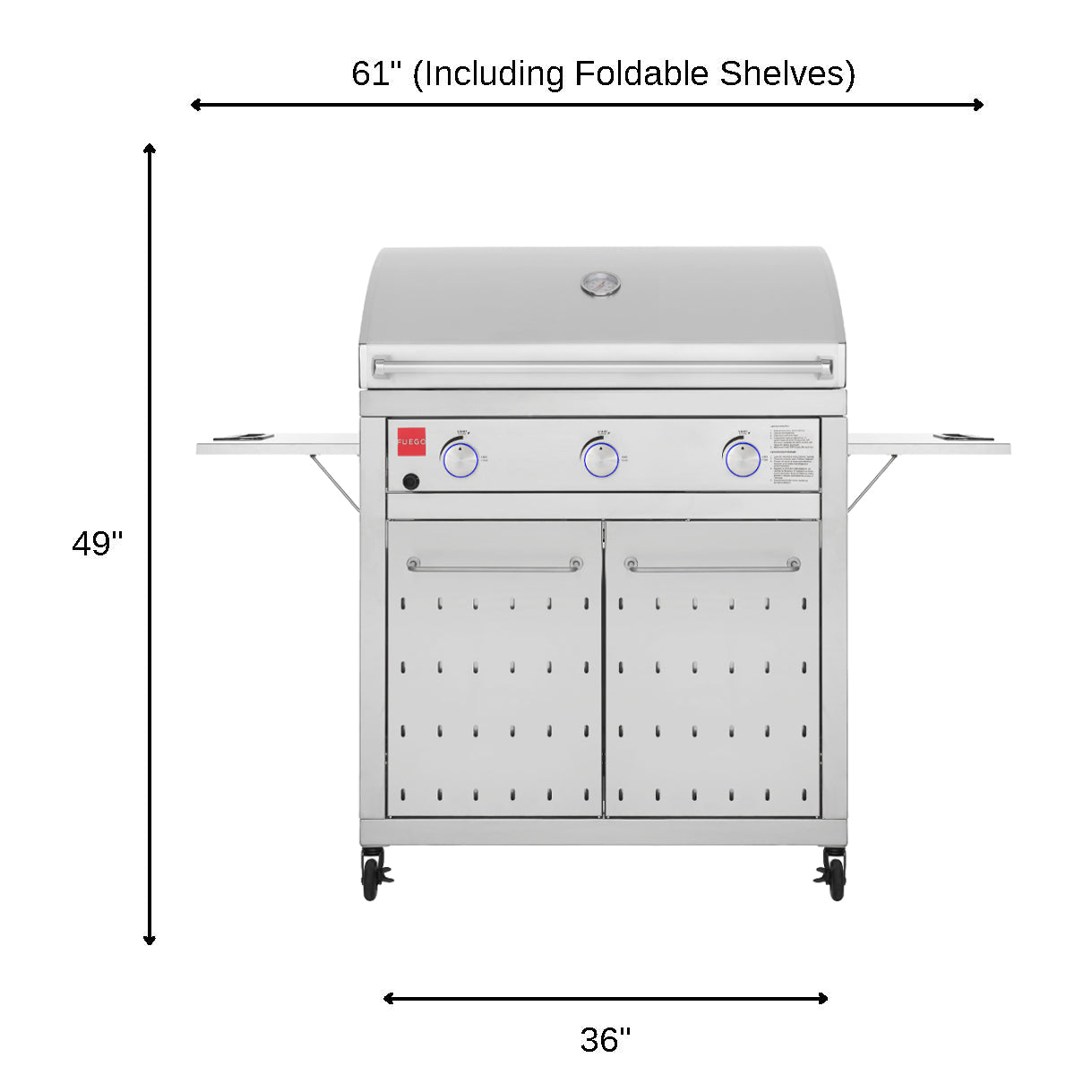 At only 36" wide with the shelves down (more about our recessed shelves below) the F36S-Pro grill maximizes grilling area. With a combined grilling area of 865 sq.in, you can easily fire up the grill for the neighborhood gathering or your family of any size.